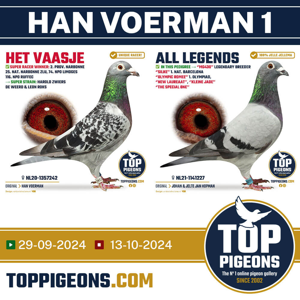 Deze veiling is de Semi Totale verkoop van Han Voerman. De reden hiervoor is dat Han gaat verhuizen naar een andere provincie in Nederland. Han heeft een goed duivenbestand opgebouwd die vooral leunt op de duiven van Jelle Jellema.