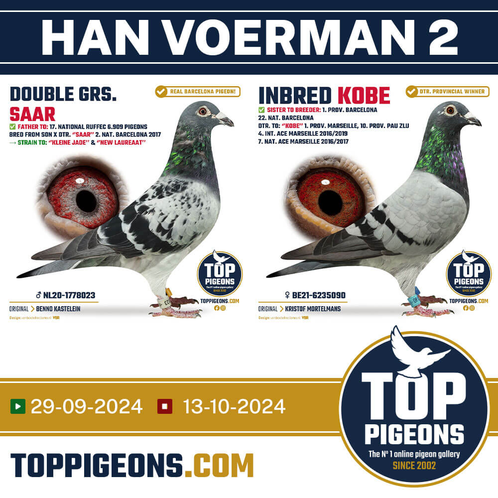 Niet alle duiven gaan weg want Han neemt 8 koppels mee naar het nieuwe adres. Ook is het de laatste kans op een kind van de 18e Internationaal Barcelona 2024. De laatste drie kinderen van hem zitten in deze veiling. De laatste omdat deze 18e Internationaal Barcelona is gepakt door een roofvogel. Pak uw kans!